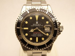 The classics keep coming in. The Rolex Submariner has to be considered the grand father of all modern sport watches. I have no idea what sport watches of today would look like if Rolex had never introduced the Submariner. This one in particular is somewhat special because of one little feature on the dial. The word SUBMARINER was written in red making this one of the famous “RED SUBS”. The watch has even patina on the hands and dial markers. The folded link bracelet number 9315/280 appears to be original and has a date stamp of 1970. The original non trip lock crown is also fitted and requires 1 full turn to open. Model 1680 is also an in demand model because it was the first submariner to feature a date. The date ring is still the original black on silver combination. Serial number 2500XXX places the date of manufacture around 1970. The only obvious flaw I know of with this watch is the little pearl dot on the bezel insert is missing, this is a common issue and replacements are available. Comes with our 1 year warranty at the estate price of $5,000.00. Stock #e6574.