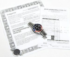 A few service parts are not original but it would be almost impossible to find a GMT in this condition with so many different documents all in the 1st and only owners name. The watch was lightly worn, always used with care in mind and the condition is testament to that treatment. The fine finish details are present, there is little to no sag in either bracelet and the case still displays a nice bevel on the lugs.
