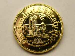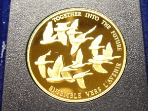 An interesting website that follows the gold price is kitco. You can see the current price of gold in Canadian dollars along with excellent historical charts and commentary on precious metals. Holding a little gold is a great way to protect yourself against effects of inflation when it takes more and more paper money to buy what you need. These commemorative bars are the first we’ve had of such a design. We may never have this design come in again. Stock #e12134-e12138.
