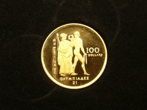 A nice example of the 1976 Montreal Olympic $100.00 coin. It weighs 16.96 grams and is made from 22 karat gold. Comes in it’s original wooden box with certificate. Estate priced at spot gold price only, no premium added for NON credit card purchase. This coin contains 1/2 an ounce of fine gold. You can buy this gold coin for 5% less than the actual value of gold it contains! Current price of gold can be seen here. Shipping to domestic destinations only. Stock #e6129.