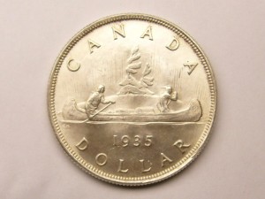 Most coins that we see simply get recycled for the silver content because they are so common. This is not a very rare coin but it’s fate will be spared this time because this is the first Canadian silver dollar. One of the approximately 428000 produced in 1935.