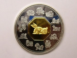 Chinese lunar year of the rabbit Canadian coin. This is a large coin measuring 40mm in diameter made from 1 oz of sterling silver. Estate priced at $50.00 THIS ITEM HAS BEEN SOLD