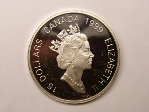 The coin is legal currency in Canada with a $15.00 face value. Perfect condition and only removed from its protective plastic case for a couple of quick photos. We only have one and when it’s gone it’s gone. Estate priced at $40.00 CAD. Stock #e11230.
