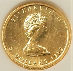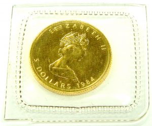 Hurry up. Spot plus 5% on fractional bullion and NO tax never happens. These smaller gold coins usually trade at the current bullion “spot” price plus at least 10 to 15%. Not only is it a great price, this coin is untouched, still sealed in a protective plastic package. In 1984 the Canadian mint produced 262000 of these little coins. They’re certainly not a rare coin but that doesn’t mean they’re easy to find. We hardly ever have anything other than the full 1 ounce versions for sale. Those who have them usually squirrel them away and are always on the lookout for more. First come first serve on this coin. We only have 1 so don’t waste time thinking about it. Call us, email us or come in right now! Please add 2% for credit card payment. Stock #e10525.