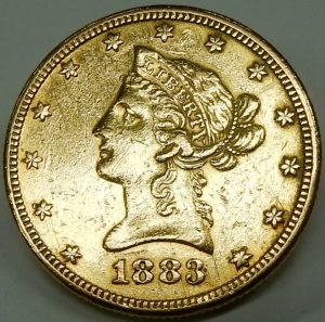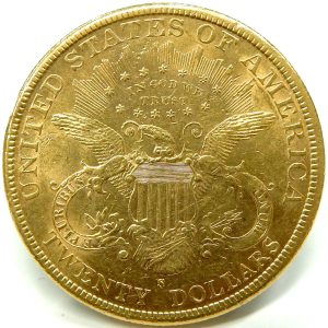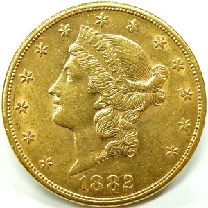 Sure we could just melt it down and sell the 0.9677 oz. of pure gold this coin contains but we feel destroying such a pretty thing would be a shame. Considering it has been around for 136 years it is in remarkable condition. The US mint produced 1,125,000 of these coins in 1882. While such a number seems high, consider this perspective; there were only about 1 of these coins for every 50 citizens in the United States according to the 1882 census. That sounds about right as most people of the era wouldn’t consider carrying such a large amount of cash with them. The average wage in the late 1800s in the United States was typically around $2.00 to $3.00 per day, making the coins value equivalent to about two weeks work. Today (Jan. 31, 2018) its gold value is around $1600.00 CAD, or about the same as 2 weeks work at today’s wages assuming 40 hours per week at $20.00 per hour. Amazing how some things stay the same. The value of gold’s purchasing power has remained remarkably stable over the centuries. Having a little gold is usually a pretty safe way to protect yourself against the effects of inflation. Rare, not really, but we still don’t see these old coins too often. We are selling this coin for just 5% over the actual value of gold it contains plus applicable tax. Stock #e11053.