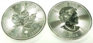 They are being sold for the silver spot price plus just $2.00 each and no HST. We have a bunch of other random year 1 ounce maple coins for sale this weekend but only until supplies last. No minimum order but we are limiting the maximum purchase to 25 coins per person. We are not selling 1000s so don’t wait. First come first sold. If you want them email us at info@BillLeBoeufJewellers.com, give us a call 705 728 3343, or come in ASAP. We will honor this price until 11:59pm July 1st. We’re closed Sunday June 30 and Monday July 1st. If you’d like to reserve your coin(s) leave us an email or voice mail if we’re closed but please remember we may not be able to fill all orders. Major bullion retailers sell these coins for at a minimum of spot plus 15 to 20% (in volume of at least 25 coins). These are likely the best value currently on the market. Stock #e12287. Credit card purchase please add 2%.