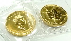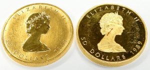 Fractional ounce fine gold Canadian coins almost never come in. When they do they are usually not perfect with typical evidence of use in the form of small scratches and dings. We just picked up a couple 1/2 ounce 9999 purity $20.00 Canadian Maple leaf coins and a couple 1 ounce $50.00 coins that are in excellent condition. They are all still in their original plastic containers with presentation boxes.