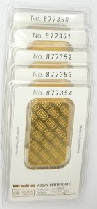 There is something very special about pure gold, the look, the feel, and the density are easy to fall in love with. Once you’ve held some you realize what all the fuss is about. Occasionally we have untouched examples still in their sealed packaging. All sizes, all brands are all priced at just the intrinsic gold value plus 2%. No waiting and no extra shipping fees. Always contact us first for availability as we don’t always have bullion available on site. These bars come and go all the time. Stock #e12181