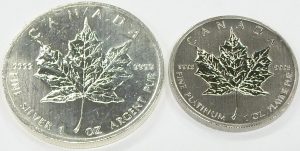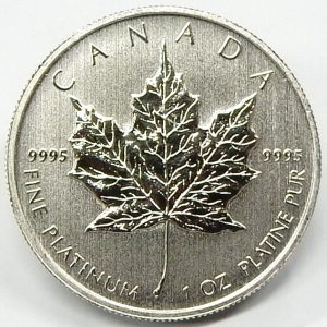 This is only the second bullion platinum Canadian Maple Leaf coin we’ve ever been fortunate enough to post on our website. Ten years after Canada introduced the world’s first 999 pure gold coin, the Royal Canadian Mint introduced it’s 9995 one ounce platinum coin in 1988. The platinum coins are far more rare compared to the gold versions. Often these platinum coins are minted in numbers lower than 20,000 per year compared to 1,000,000 for the gold coins. None were produced from 2000 to 2008. Platinum is far more rare than gold and silver, it’s also more dense. Compared to a 1 ounce pure silver coin the 1 ounce platinum coin occupies far less space.