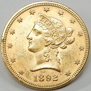We’ve said it before and we’ll say it again. “Everyone should own a bit of gold”. Not just because it’s beautiful to look at but it feels great between your fingers and it could be a great investment too. Investing in the stock market is a key element to many investment portfolios, but one could also argue holding a little gold is important. After all, even the oldest companies can’t compete with the 5000 year history that gold has as an object of considerable value. The price of gold is always changing against what it is typically compared to (paper currency). It has always been welcomed for trade in almost all cultures for any other commodity you may need. You can’t just print more gold. It’s a good way to offset the affects of a weakening dollar and inflation. We don’t see many US coins around here and are happy to offer this 1986 22 karat U.S. $10.00 coin that contains 1/4 troy ounce of the precious metal. A beautiful likeness of Lady Liberty shows on the obverse side with powerful images of the majestic bald eagle on the reverse.