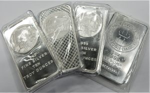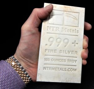 Silver bullion is so inexpensive right now. 1 ounce of silver is more than 88 times less expensive than 1 ounce of gold. The historic relationship of gold vs. silver price is closer to 40 to 1. There have only been 2 other times in history that I’m aware of when the silver/gold ratio has been more distorted than right now. This tells us that gold is overpriced or that silver is under priced. With all the chaos in the world at the moment my personal belief is both silver and gold are under valued but much more so in the case of silver. With silver pricing as low as it has been for the last few years we’ve slowly been acquiring silver but seldom (almost never) do we sell any of it. For all those people who call us asking for silver bullion here’s your chance. These 100 ounce bars of 999 fine silver were manufactured by North Texas Refinery.
