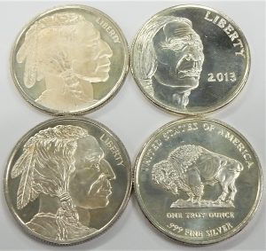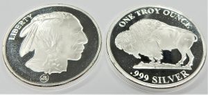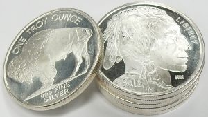 With the current price of silver this low we normally wouldn’t be selling, but right now we’re a little overstocked so here’s you chance. For all those people who have been calling looking to purchase this type of tax exempt bullion, come and get it. We have a limited supply of these RMC Buffalo rounds for sale at current silver spot price plus 10%. The price changes moment to moment, for an up to the minute price check click here. You’ll see the price of silver and other precious metals in all major world currencies. These 1 ounce 99.9% pure coins are all in perfect condition, still in their protective plastic tubes.