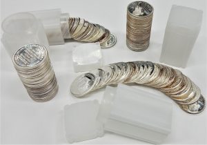 We almost never sell fine silver, but sometimes it begins to overwhelm us and we need to free up space. We’ve been buying it for years but rarely do we sell it, especially when silver seems so inexpensive at just $20.00 CAD per ounce. This Royal Canadian mint tube of 25 just came in. They’re all in perfect condition and they’re all 2008s. If you don’t own any silver now’s your chance to get into the bullion market with these.
