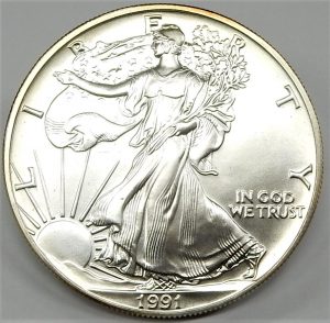 For those of you who have been calling and emailing us for silver bullion here is your chance. We seldom have physical silver bullion available for delivery and we are not alone. Obtaining actual gold and silver bullion in person is becoming more difficult all the time and those who have it make the rules. Generic silver bullion is trading hands right now for generous premiums over spot price no matter the brand or condition. We are usually not sellers of silver but occasionally we like to offer our clients the opportunity to purchase some when it becomes available through our estate department. We are offering these .999 fine silver Golden State Mint medallions at spot price plus just 5%. The major bullion traders are selling round medallions like this for 10 to 15% over spot (CAD). Even when buying single large 100-ounce bars the spot premiums are close to or over 10%. Bullion is not our main business, so we are happy to pass along a slightly smaller premium compared to the typical metal trading companies. If you have been looking for silver bullion you know how hard it is to find and a good price. This is your chance to pick some up for a little better price than the typical sources. They are being sold on a first come first serve basis. To see the current spot price for silver in Canadian dollars click here. For credit card purchases, please add 2%. We may have a few more odd bars, coins, and medallions for sale; if you’re interested please ask. Stock #912-00650.