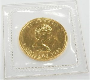 Get is while you can. Gold is on a tear, who knows where it will end up. Since gold bullion like this is not rare or collectible their value is simply determined by the intrinsic gold value and not the condition. As a bonus this one is quite nice and comes with a protective plastic capsule (not pictured). These are an easy way for the average person to invest in gold bullion. In January 1979 gold was trading for around $225.00 USD per ounce. By early 1980 it had shot up to $850.00 USD. Not a bad return if you timed the market correctly. If you bought gold a few months after the 1980 high at $500.00 USD it would have taken you around 25 years to get your money back when in 2005 it broke through the $500.00 barrier again. Now in 2024 gold has broken through $3,400.00 USD! What does all this mean? I have no idea, but the world is a much more complicated place than it was the last time gold really spiked. There are billions of people around the world who have little trust paper money, but they do trust gold and the value it represents. It’s not a bad idea to hold some of this precious metal as an alternative to cash. Buying pure gold like this is tax free, there is no sales tax on precious metals like gold, silver, and platinum. This 1985 coin is priced at the current price of gold plus 3%. You can check out the current price of gold in Canadian dollars here. Holding a little gold is a great way to protect yourself against inflation when it takes more and more paper money to buy what you need. For credit card purchase please add 2% service fee. Stock 912-00588.