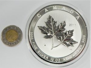 (The 25 x 1 oz. silver maples have already been sold). The “spot” price for silver can be seen here; add 10% for a cash, debit, or e-Transfer purchase and that’s the total price. Credit card purchase subject an additional 2% fee to cover costs.