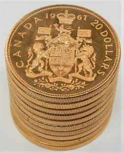 Canadian Centennial $20.00 gold coins being sold for just 95% of the actual gold value. These were struck by the Canadian mint as part of the commemorative series of coins for Canada’s 100th anniversary 50 years ago. Each of the 337,688 $20.00 gold coins produced are of 90% gold purity and contain 0.5288 oz. of actual fine gold. They are being sold on a fist come first sold basis only. Just to make it clear; we are selling each coin for 5% LESS than the actual gold value they contain. There is no catch. If you know a proud Canadian who would appreciate such a gift come and get one while you can. We only have a few available. For a current price check of gold clickhere. Please add 2% if payment is made using a credit card.