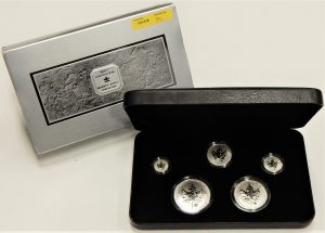 The price for silver has been on the rise for many years but still hasn’t touched its all time high of around $58.00 Canadian in 1980. This set of 9999 fine silver coins is being sold as a set of 16 only for just their value in silver plus 10%. If you’re interested in this set please contact us ASAP as these will sell quickly. The price for these coins changes every minute with the silver markets. At current silver pricing (Feb. 25th, 2025) the set will cost you around $805.00 CAD. Stock #912-00672.