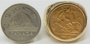 Everyone loves pure gold investment bullion. We never have enough 99.9% pure gold or silver to satisfy the requests we get for it. We also have Canadian 14 karat, 22 karat, and the occasional 1967 90% pure Canadian Centennial gold coins, plus other recognized world gold coins that are usually alloyed to 22 karat. Here are some NON bullion coins we are selling for only the intrinsic value of the gold they each contain. There is no additional markup considering numismatic value, rarity, or collectability. These coins each contain from little under 1/4 ounce to 1 full ounce of gold. The only extra charge is one we have no control over; because these coins are not 99.9% pure, they are subject sales tax. The frames on some of the coins are also priced for only the gold content they contain plus sales tax. Vintage British sovereigns, South African Krugerrands, $100.00 Canadian coins and a few others are what we currently have in stock. Everything you see here is being sold for simply the value of gold in each coin plus applicable sales tax (some have already been sold). For NON cash/debit/e-Transfer purchases please add 2% to cover credit card fees.