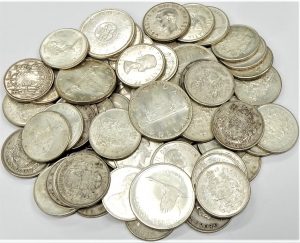 Did the red flags, bells and whistles ever go off when all these came in. Talk about an unlikely source of fine silver coins. The republic of Somali is not generally known for their minting of precious metal coins. In fact, we didn’t even know these coins existed until they came in, let alone ever see dozens of perfect examples. We have a limited number of these beautiful 1 ounce fine silver coins that were minted in Germany 2013. They are in perfect condition still in their 20 coin shipping tubes. At current silver prices they often trade hands for $30.00 Canadian each. When these are gone we are unable to replace. They are being sold for “spot” silver price plus 15% and no taxes of any kind. We don’t charge tax on coins and bullion that is a least 99% pure. For an up to date spot price for silver, gold and other precious metals in Canadian dollars click on Kitco. Coins like this are always in demand and are easily sold if the price of silver goes up. They’re a fun way to get into the bullion market. Estate priced at spot plus 15% and no tax.