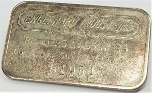From bottle caps to fine art and vintage watches, people like to collect the rare and unusual. The the world of precious metals and bullion are no exception, early and vintage silver bars command premiums over the actual precious metal value they contain. This is a scarce Engelhard Canadian 1-ounce fine silver bar. Engelhard refineries were once one of the largest, if not the largest refiner of silver, gold, and platinum in the world.