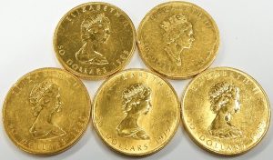 Canadian 1 oz. fine gold maple leaf coins are one of the most sought after bullion coins in the world. These coins were introduced in 1979 and are minted using Canadian sourced gold. They were the world’s first ever pure gold bullion coin. They are a minimum of 99.9% pure and are not subject to any sales tax. The Canadian Revenue Agency looks upon the sale of these coins as a “financial transaction” therefore not taxable provincially or federally. They can be difficult to find and quite often not available to us. These 5 examples just came in. They are all from the year the years 1979, 1980, 1983, 1985, and 2002. This may be a good opportunity to pick one up. No one knows where the price of gold is going, 10 years ago it was selling for around $1,350.00 per oz. and 20 years ago it was only $500.00 CAD. Today as of this post it’s close to 2,800.00 Canadian. These coins are being sold for gold price only plus 4%. A good place to see the current price of gold and other precious metals is Kitco. No shipping, no extra fees, no waiting for delivery and you can have the satisfaction of owning the actual physical material. First come first serve. Call ahead first as these can go quite quickly. Please add 2% for credit card purchases. Stock #912-0476, 912-00477, 912-00478, 912-00479, 912-00480.