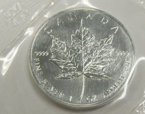 We’re not usually sellers of silver bullion at Bill Le Boeuf Jewellers. Over the past few years we’ve sold very little but bought almost every ounce offered to us. Every once in a while we like to let go some of go. This attractive 1 ounce Canadian maple leaf coin from the Royal Canadian Mint is just such an item. This coin is in uncirculated condition. Fine 9999 silver is very hard to find at reasonable prices and almost never appear around here in the original RCM shipping package that is now 30 years old. Fine gold and fine silver is not applicable to any form of sales tax in Canada. The Canadian Revenue Agency deems the sale of fine bullion a financial transaction therefor not subject to Provincial or Federal sales tax. With all the turmoil happening in the world right now, everyone should turn a little extra cash into some form of precious metal. This coin is being sold the current spot price plus 10%. No sales tax added. Please add 2% to cover credit card fees if not paying by cash, debit, or e-Transfer. We have more single and smaller multi ounce miscellaneous packages available all for sale at spot plus 10%.