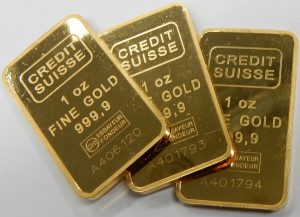 From loose diamonds, fine jewellery, watches and even bullion, we’re always striving to showcase the best value anywhere! We know we offer excellent value on everything we sell, but value in the jewellery business can be a hard thing for people to calculate. This time we thought we’d showcase an example that’s easy to recognize the unbeatable value. First come first serve for 1 or all three of these 99.99% pure gold wafers by Credit Suisse Switzerland. Credit Suisse are one of the largest multinational financial investment service institutions in the world with revenues over 20 billion USD and 45,000 employees. These serial numbered bars have been been refined, assayed and minted by Valcambi Switzerland. Buying recognized gold bullion at the “spot” price plus 3% in a bullish gold market is a great opportunity. Most gold of this tyle sells for spot plus 4 t0 6% or more. The purchase of fine gold bullion is considered a financial transaction and not subject to any form of sales tax. This price is for NON credit card payment only. A 2% service fee will be added for Visa or MasterCard payment. Interac e-Transfer and wire payment are accepted for our out of town clients. First come first serve. For an up to the minute gold quote just click here and add just 3% to calculate your price per ounce. We gladly accept payment in USD or CAD and shipping to you can be arranged. Stock #912-00495, 912-00496, 912-00497.