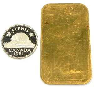 Rare poured Engelhard 2 ounce fine gold bar. Spot price plus 20%, no bank fees, no shipping fees, no waiting. This is an HST exempt sale. Believe it or not this bar is quite collectible amongst gold bugs. They don’t come to market very often and they always sell for well above spot price. Once they are purchased they are usually squirreled away never to be seen again. There is no sales tax on a fine gold purchase like this. Gold has pulled back from almost $1900.00 a number of years ago per ounce to around $1700.00 CAD as I write this. Who knows where the price will be in the future. Everyone should own a little of the only real internationally recognized currency that has a 5000 year history of retaining value. Gold is incredibly dense, it is 19.32 times heavier than an equal volume of water. Our little bar is surprisingly compact, occupying a space of around 3.25 square centimeters. Engelhard refinery is no longer around and these poured bars are quite rare now. This bar has an actual weight of just over 2 troy ounces at 62.26 grams. Estate priced at actual gold value plus 20% and no sales tax. Stock #e8969.