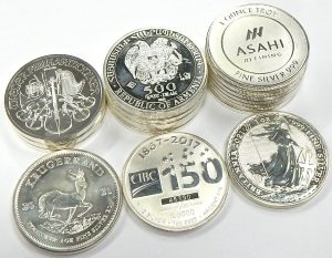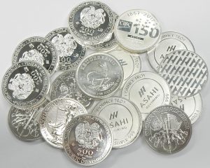 Buy them now and do your research later. No one is selling fine silver bullion at just spot plus 5%. Fine bullion like this is sales tax exempt. Buying these is an excellent way to get into precious metal investing. This is a great variety from recognized producers from around the world. This collection of 19 x 1 ounce round medallions consists of a South African Krugerrand, CIBC 150th. anniversary, Britannia, Austria Philharmonic, Armenian Noah’s Ark, and Asahi Japan medallions. As we post these September 17th, 2024 the spot price of silver closed are $41.74 per ounce Canadian, bringing the cost of these to $832.71 CAD (including 5% premium). We don’t expect them to last. If you are interested in acquiring some inexpensive silver bullion, contact us immediately. These are being sold as a package of 19 only. For credit card purchases please add 2%. Stock #912-00628.