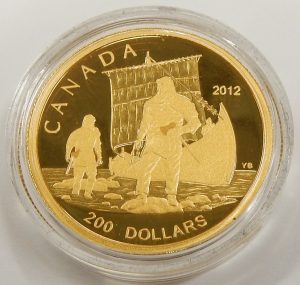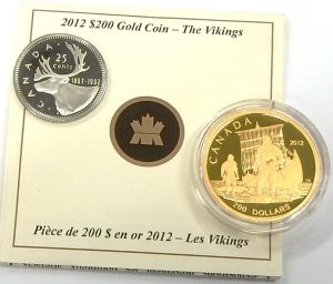 Does anyone know why The Royal Canadian Mint makes commemorative coins in unusual weights like this one. The RCM have the ability to produce the world’s most pure gold coins of up to 99.999% purity, buy they chose to make this coin just shy of half an ounce. It would have only taken 0.122 grams more to be a logical 1/2 ounce. The coin itself is one of the more rare mintages with only 3000 specimens being struck. It has a face value of $200.00 and is legal tender in Canada. In 2012 when this coin was produced it contained around $850.00 worth of gold, today the value has increased to $1,840.00!!! The coin commemorates early Viking exploration to the shores of North America (Eastern Canada) believed to be around the late 10th century, close to 500 years before Columbus bumped into America. This coin is in perfect untouched condition, still in its protective plastic container. It is a little larger in diameter than a Canadian quarter and much heavier.
