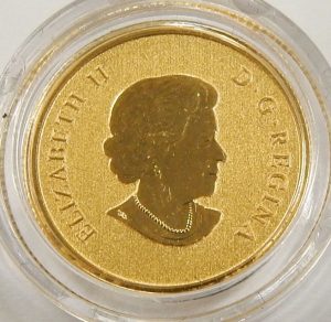 If you have any interest in obtaining a fine gold coin of 99.99% purity BUY ONE OF THESE COINS. You will not find a better example. Bullion coins such as this are tax exempt and the price fluctuates every minute with the price of gold. We are selling these coins for the commodity price only plus 4% and NO TAX. The current price of gold in Canadian dollars can be seen here. 1 ounce coins come in on a fairly regular basis but smaller 1/2 ounce examples are very rare. We can’t repeat this offer, first come first serve only. No holds. Stock numbers e9044, e9045, e9046, e9047.