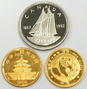 Most gold coins are alloyed with other metals making them more durable and long lasting once they get into general circulation. That’s fine but gold coins practically never go into circulation for face value. With today’s gold price of around $1,500.00 USD per ounce, the face of gold coins is often 25 times less than what they’re worth in gold content. Any gold coin alloyed down to be less than pure is subject to sales tax when purchased in Canada. 99.9% pure gold coins like these Chinese pandas are actually quite uncommon. Only a handful of countries produce coins of such quality and these also never go into general circulation for their face value. Bullion coins like these can legally be purchased in Canada tax free, no sales tax is added when purchased. The Canada revenue agency looks upon the sale of fine gold and other precious metals as a financial transaction therefor not subject to sales tax. We have a limited quantity of these 1/20 and 1/4 ounce 999 Chinese panda gold coins. They are for sale for only the intrinsic value of the gold they contain plus 4% and no sales tax. Buy one, two or buy them all. These don’t come in very often and never in any significant quantity.