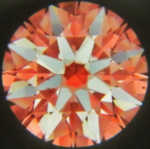 You really can’t improve on something that’s ideal. This diamond was cut without regard to the finished weight. The finest cut was the only thing our master diamond cutter was instructed to do when a badly damaged 3.00 carat was submitted for an insurance salvage claim. We missed perhaps the finest opportunity of before and after pictures because I wasn’t sure if even the biggest 0.88 carat fragment of the original 3.00 carat could be cut into anything useful. Have a look at the cut report for this little ball of fire to see what we ended up with. Every single measurable component of cut is absolutely ideal. From table to culet, from crown angle to depth percentages, everything is perfect.