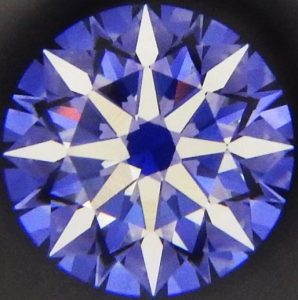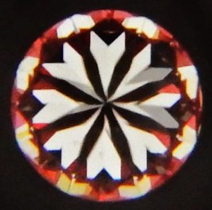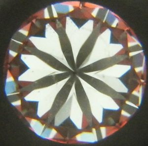 In practical terms this means almost nothing but the strict AGS standards have a very closed range and this diamond just missed it. It sparkles and twinkles like a little ball of fire, in fact the cut is better than all but a tiny fraction of diamonds on the market. When viewed through polarized light the coveted hearts and arrows pattern reserved for only the finest of the finest cuts still reveals itself very well.