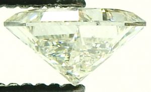 Diamonds are by far the hardest of all gemstones. In fact, they are 200 times harder than the second hardest gem, but that doesn’t mean you can’t chip or break them. Much the same as wood has a grain, diamonds have directional hardness and cleavage planes. If impacted with enough force in the right direction, diamonds can be damaged. While this isn’t common we do see it from time to time. Diamonds of promotional quality with significant surface breaking inclusions are more prone to damage than higher clarity diamonds. When this estate diamond arrived to us it weighed 0.99 carats but wasn’t well cut and had a significant chip that extended into the stone.