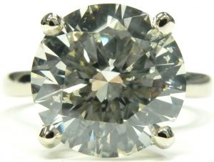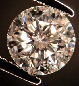 This just could be the perfect diamond for someone like you. Sure everyone would love a GIA certified diamond with all the boxes checked off; flawless clarity, D colour, excellent cut, excellent symmetry, excellent polish and no fluorescence. The problem is exceptional quality comes at a huge price. For example; a GIA certified 1.00 carat round diamond of absolute perfection will cost you well over $20,000.00 CAD at current exchange rates. If you want a perfect diamond the same size as this estate 5.01 carat expect to pay around $750,000.00 CAD. That’s right 3/4 of a million dollars (assuming you can find one). It’s not just the 4Cs of clarity, colour, cut and carat weight to consider when buying a diamond; there’s a 5th C. The “cost” is the 5th C that everyone needs to contemplate. Whether it’s a thousand dollars or one million dollars everyone wants to get the most bang for the buck plus outstanding value. That’s why I like this diamond so much, it offers a great big look and amazing value. It’s got the size at over 5 carats with an average diameter of 11.07mm, excellent cut, excellent symmetry, excellent polish and no fluorescence. The clarity of SI2 is 7 grades from flawless but it looks perfect without magnification to anyone except under extreme scrutiny and only from those with exceptional close up vision. The small white crystal inclusions disappear under any typical viewing situation. This high resolution, high magnification image reveals the insignificant natural inclusions that have been a part of this diamond since it formed billions of years ago.
