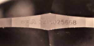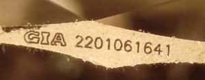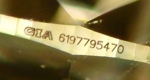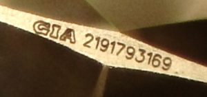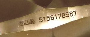 Valuable and important diamonds should always come with a GIA report (there are no substitutes). If you’re considering any valuable diamond, insist it comes with a Gemological Institute of American Diamond Grading Report. GIA DO NOT provide appraisals and has no interest in the commerce of diamonds. They are an impartial 3rd party, interested only in research, education, and detailing the quality of diamonds and gems. This diamond has been laser engraved (at extra cost) with the GIA report number on its faceted girdle edge.