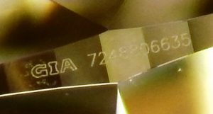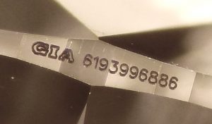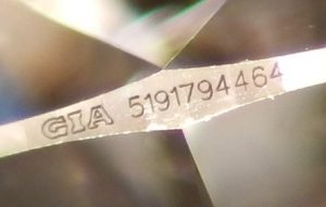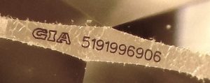 While the diamond was at GIA in New York we decided to spend a little more and have the report number laser engraved in the girdle. This permanent engraving allows the owner peace of mind if the original document is ever lost.