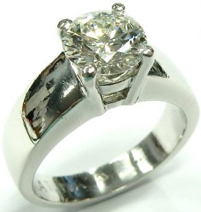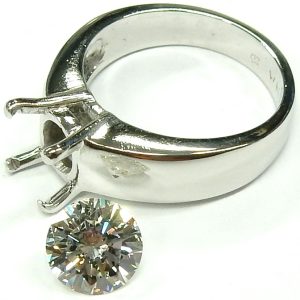 All that being said its large 6.38mm diameter is bigger than many 1.00 carat diamonds and it sparkles remarkably well. We’ve selected a traditional 14 karat white gold solitaire to efficiently showcase the diamond is a simple 4 prong pedestal.