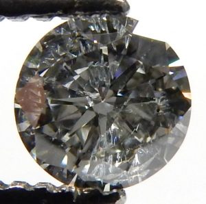 Once upon a time this diamond weighed the magic weight of 1.00 carat. It was sold to a person who didn’t understand how important an excellent cut is. The cut determines just how much brilliance and dispersion is produced. Originally it measured an average diameter of just 5.85mm and 4.10mm deep. It was perhaps the poorest example of cutting I has ever seen. It was waaaaay too deep, the girdle was much too thick, it had a giant extra facet on the lower half completely distorting the pavilion. Have a look at these before and after pictures. Even if you’re not a gemologist it’s easy to see what’s wrong with the original cut.