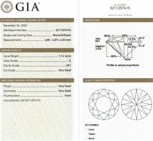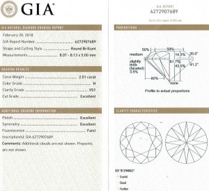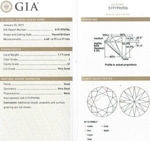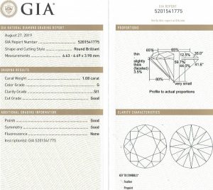 I’m happy to say the diamond actually graded a slightly better SI1-H from the GIA. The complete October 15th, 2021 report can be seen online here.