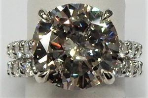 Fortunately, the high-quality, solidly constructed ring can be made up to 3 sizes larger if needed Our onsite goldsmiths can accomplish this task in only a few days. If you like this diamond but would prefer a different setting, bring us your ideas. We’d love to create a custom one of a kind piece of jewelley for you. The complete ring with 4 newly repaired claws (not completed yet) is estate priced at only $4,690.00. The diamond alone is priced at $4,060.00 CAD. Stock #e14471.