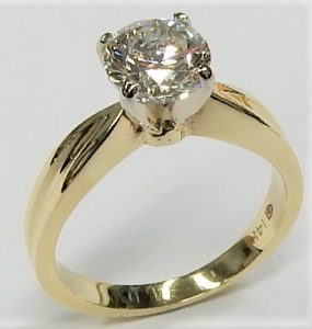 When this diamond ring arrived it needed 4 new claws, as they had worn thin over more than 20 years of continuous use. We figured before making the necessary repairs, we might as well add some extra value by sending the diamond to The Gemological Institute of America for a grading report. The diamond ring already came with a DC Taylor appraisal conservatively grading the diamond an SI2 clarity with an H colour.