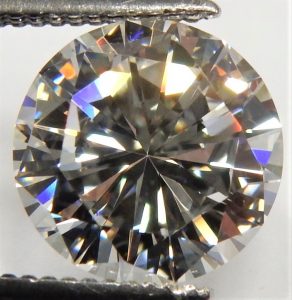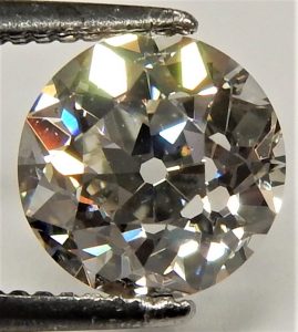 All the rudimentary facet shapes are there, they only need to be manipulated in proportion to become a perfectly cut modern diamond the same as the next one. The clarity has numerous feathers and crystals leading us to grade it an I2, although you may feel it looks better (especially in person) with its relatively clear centre section. The colour we have determined to be in the KL range but not the typical yellow to brown hue but more of an uncommon very slight grey tint. The cut and symmetry by modern standards is fair at best but that doesn’t mean it lacks brilliance and dispersion. Considering the age and generous weight of well over 2 carats this is a truly rare example of an antique diamond. Lab-grown diamonds are all the rage these days and are definitely an easy way out. If you don’t want to have a lot of skin in the game, our price for high quality lab-grown diamonds is close to 98% less than a natural diamond of the same quality. This image is of a currently available (January 6, 2025) 2.15 carat, VVS2-H, lab-grown diamond with an excellent cut, symmetry, polish, and no fluorescence, priced at $470.00 USD.