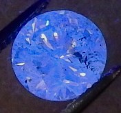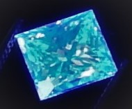 The strong fluorescence is a unique characteristic that only some natural diamonds exhibit (lab-grown diamonds do not fluoresce like this). When exposed to invisible long wave ultraviolet light some natural diamonds glow an eerie chalky blue colour like this.
