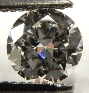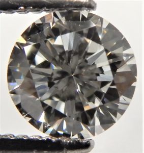 Here’s a deal for anyone thinking of a jewellery project. There are times when we like to throw up a killer offer just to see who’s paying attention. If you have no use for a diamond of any kind then I’m sure you can find a better use for $1175.00. But if a nice pendant, ring or any other piece of jewellery is in your thoughts this is a value that can’t be beat. This 0.55 carat round brilliant cut measures an average of 5.27mm diameter giving it a footprint closer to many 0.60 carat average cut diamonds. A small white feather at the 10:00 o’clock position within the table border gives it a conservative SI2 clarity (others may grade this type of diamond a SI1). As compared to our 1970s Gemological Institute of America master stones we’ve determined the colour to be a G (G master stone master on left, subject diamonds in centre, “I” master stone on right).