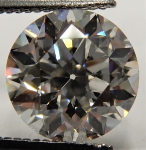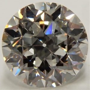 Our latest estate diamond grades an excellent VVS2 clarity with a slightly warmer L colour. Most diamonds from this era were mined in South Africa and as such usually exhibit a certain degree of colour. It’s not uncommon to see MNO colour grades or lower when looking for antique diamonds, so the L colour is very respectable. Stones with warmer colour grades in the JKLM range benefit particularly well from the dispersion biased European cut style. When this diamond was new, artificial electrical lighting was practically unheard of. Sunlight and fire were the only sources of incandescent light, European cut diamonds make the most of these natural light sources. You’re going to be very surprised just how bright a properly graded, L colour, European cut diamond is when you see it in person. A tiny 51% table with a tall crown produce much more dispersion than even an ideal cut modern round brilliant.
