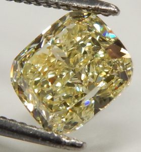 Our in store diamond database contains close to 700,000 diamonds from the world’s largest cutting factories, but only around 2,800 are fancy yellow diamonds. Of those, only around 50 are this size or larger and of the same or better quality. That works out to less than 1 per every 100,000 diamonds. Diamonds like this are not readily available or replaceable. Yellow diamonds occur when trace amounts of nitrogen are present when the rough diamond crystal formed billions of years ago. This yellow diamond is of Internally Flawless (IF) clarity.