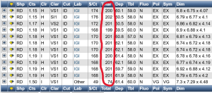 Diamonds are not really that rare, but high quality, excellent cut, good sized diamonds are. Finding a diamond just under 1.00 carat that’s been GIA certified excellent cut is exceedingly rare. Checking our 1/4 million diamond dealer database shows that only 67 other round diamonds weighing 0.98ct. to 0.99ct. are excellent cut. By comparison there are over 7,338 diamonds available weighing 1.00ct. to 1.01ct. of very good to excellent cut. What does this seemingly obscure statistic tell us; diamond cutters major concern is retaining as much weight as possible from a given piece of rough.